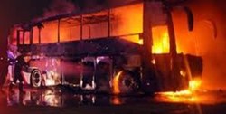 اتوبوس تهران ــ کرمان در کیلومتر 40 آزادراه کاشان به نطنز، ورودی بادرود براثر بیاحتیاطی، پس از برخورد با پشت کامیون حامل سوخت، واژگون و در لاین مخالف دچار آتشسوزی شد.                              به گزارش آوای نشاط، این اتوبوس مسافربری متعلق به شرکت تعاونی شماره هفت از تهران به کرمان در حال حرکت بوده است و در این منطقه پس از برخورد با تانکر حمل سوخت واژگون شده و در باند مخالف آتش گرفته است.