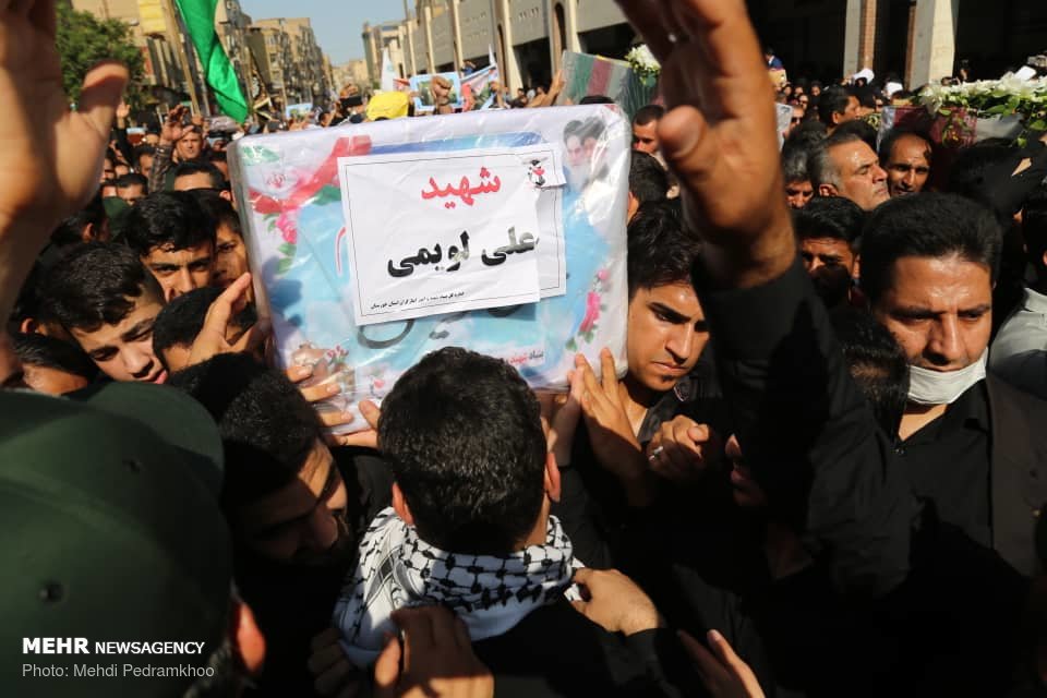 به گزارش آوای نشاط مراسم تشییع ۲۴ شهید عملیات تروریستی مراسم رژه اهواز صبح دوشنبه با حضور مردم از مقابل حسینیه ثارالله اهواز برگزار شد.