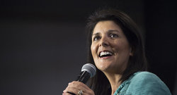 هیلی گفت: رئیس جمهوری امروز به من زنگ زد و توصیههای خوبی به من کرد. او گفت "اگر میخواهی دیگران را بخندانی درباره دستاوردهای من اغراق کن این کار در سازمان ملل خیلی خوب جواب داد."