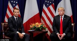 امانوئل ماکرون در فرودگاه شارل دوگل در پاسخ به اینکه آیا از توئیتهای ترامپ آزرده خاطر شده است، صحبتهای مفصلی درباره ائتلاف نظامی طولانی میان دو کشور، از جنگ استقلال آمریکا به این طرف، کرد. او به تلویزیون تیاف ۱ گفت: در جای جای تاریخ ، ما متحد بودهایم، بنابراین میان متحدان، احترام شرط اول است. فکر نکنم فرانسویها از من انتظار داشته باشند که به این توئیتها پاسخ دهم، بلکه انتظار دارند به این تاریخ پر اهمیت ادامه دهم.