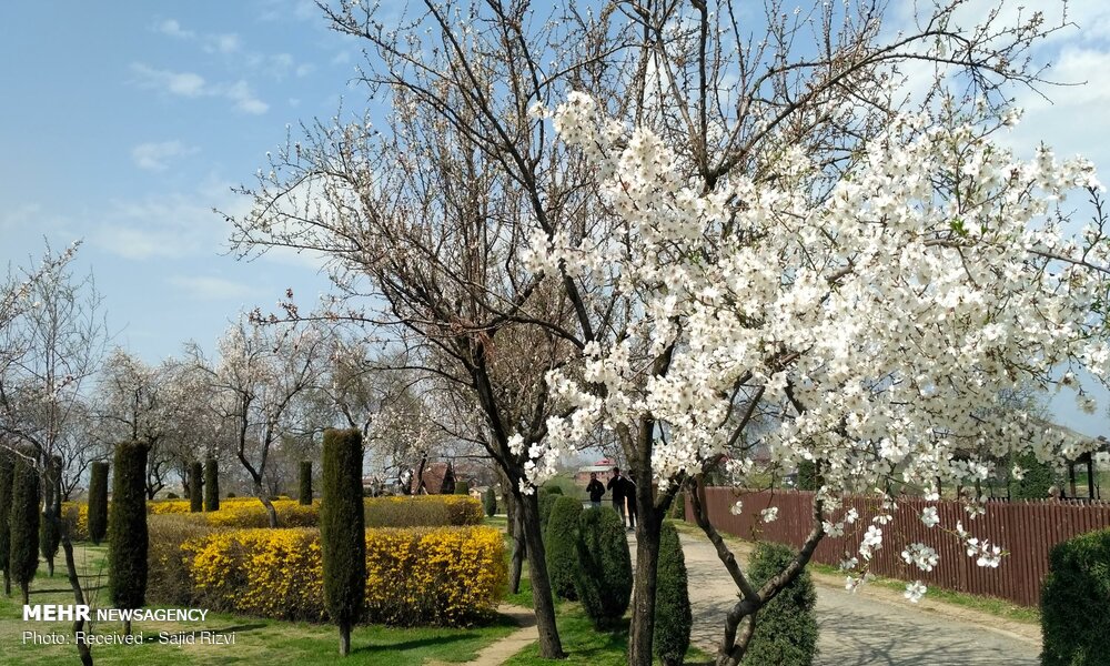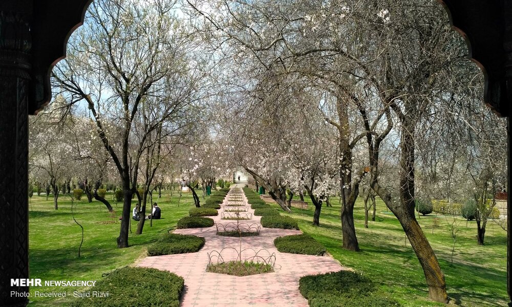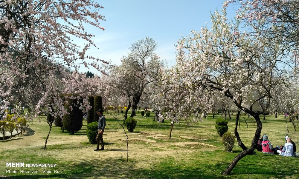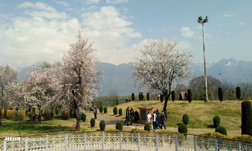 با آغاز فصل بهار، شکوفه های درختان بادام ،زیبایی خاصی به منطقه کشمیر هند بخشیده اند.
