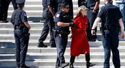 پلیس کنگره آمریکا اعلام کرد که خانم «فوندا» یکی از ۱۶ نفری است که به دلیل تجمع غیرقاونی در مقابل بخش شرقی ساختمان کنگره بازداشت شده بودند و بر اساس قوانین واشنگتن تجمع در مقابل ورودی ها ساختمانهای عمومی و ممانعت از رفت و آمد یک جرم است.