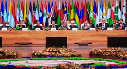 این اجلاس در شرایطی برگزار میشود که جهان به سرعت در حال گذار به سوی نظام چندقطبیاست. در این عرصه پیچیده، خشونت و درگیری در مناطق مختلف رو به گسترش است؛ حاکمیت ملی کشورهای مستقل، به شیوههای گوناگون نقض میشود؛ گرایش به قطببندیهای نظامی، رقابتهای تسلیحاتی، راهاندازی جنگها و تشدید منازعات، و واگرایی قومی و منطقهای افزایش می یابد و قانونگریزی و نقض تعهدات بینالمللی و مداخله در امور داخلی کشورهای مستقل، رو به افزایش است. امروز، آمریکا از روی استیصال، چنان بیپروا و گستاخانه از ابزارهای اقتصادی ظالمانه برای تحمیل مقاصد سیاسی نامشروع خود بر ملّتهای مستقل استفاده میکند که نمیتوان نامی به جز تروریسم اقتصادی بر آن نهاد.