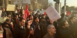تجمعکنندگان تصاویری از سردار سلیمانی را به همراه دارند و هرگونه اهانت به این سردار شهید را محکوم کردند.