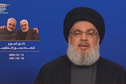 نصرالله سپس تصریح کرد: ترامپ گفت که میخواهد با داعش مبارزه کند. منافق تو میخواهی با داعش مبارزه کنی؟ تو دو فرمانده بزرگی را که با داعش مبارزه کردند،ترور کردی. بعد، ترامپ در جایی دیگر دروغهایش را برای آمریکاییها تکرار کرد چون آمریکاییها میگویند تو ما را الان به کجا و به چه وضعیتی رساندهای؟ او بهانه میآورد که سلیمانی داشت برای حمله به منافع آمریکا آماده میشد. معروف است که او دروغگوترین رئیس جمهور آمریکاست. البته که همه رئیس جمهوریهایشان دروغگو هستند اما ترامپ را دروغگوترین میدانند. او دروغ میگوید که حاج قاسم قصد حمله به منافع آمریکا را داشت. این سیلی ایران درسی برای همه بود که شجاع باشند و به امکانات و قدرت و ایمان خود تکیه کنند و آمریکا با هر قدرتی که باشد بالاخره حد و حدودی وجود دارد.