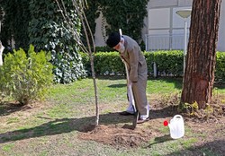 حضرت آیت‌الله خامنه‌ای پیش‌ازظهر امروز در محوطه‌ی دفتر رهبری به‌مناسبت روز درختکاری دو نهال کاشتند.