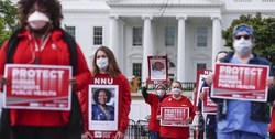 اعضای بزرگترین اتحادیه پرستاری آمریکا روز سهشنبه مقابل کاخ سفید در اعتراض به ناتوانی دولت در محافظت از آنها مقابل کرونا، تجمع برگزار کردند. به گزارش آوای نشاط، اعضای اتحادیه ملی پرستاران روز سهشنبه مقابل کاخ سفید تظاهرات اعتراضی برگزار کردند. آنها در این تجمع اعلام کردند که دونالد ترامپ از ملت و از جمله کارکنان حوزه سلامت در مقابل کروناویروس محافظت نکرده است.