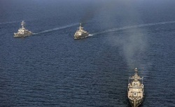 به گزارش آوای نشاط رژه یگانهای شناور نیروهای دریایی ارتش جمهوری اسلامی ایران و سپاه پاسداران انقلاب اسلامی در در خلیج فارس و آبهای نزدیک به تنگه هرمز برگزار شد.