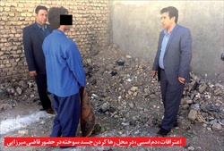 آن لحظه «ف» مقابل در منزل ایستاده بود که من از همه صحنه های جنایت تصویربرداری کردم ولی بعد از این ماجرا «ف» به داخل منزل آمد و با کمک یکدیگر جسد را درون حمام کشاندیم تا آن را بسوزانیم! من مقداری بنزین روی جسد ریختم ولی به دلیل تجمع گازهای بنزین در حمام، وقتی شعله را روشن کردم ناگهان صدای انفجارگونه ای رخ داد که «ف» ترسید و به بیرون از منزل دوید! وقتی دیدم دود زیادی در فضا پراکنده شد و همسایگان در جریان قرار می گیرند با بدبختی شعله های آتش را خاموش کردم!