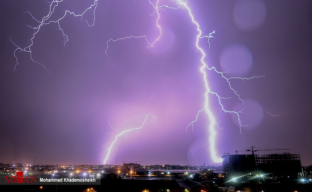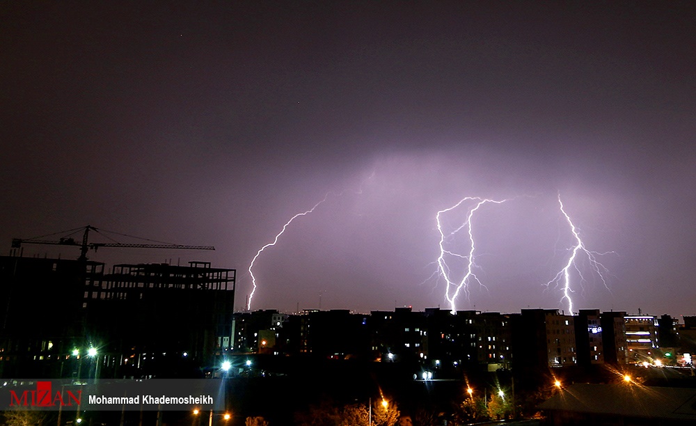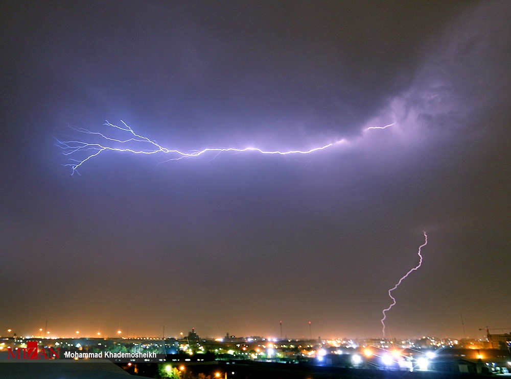 در تصاویر زیر رعد و برق در آسمان شب گذشته تهران را می‌بینید.