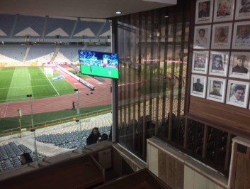 * مثل بازی استقلال و پرسپولیس زمینی کوچک در کنار زمین اصلی برای جانبازان جنگ تحمیلی و افرادی که با یک پا فوتبال بازی میکنند تهیه شده و آنها مشغول مسابقه در این زمین هستند.
