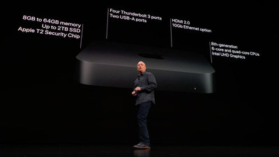 عملکرد مک مینی جدید در مقایسه با نسل قدیمی 5 برابر سریعتر شده و گرافیک آن نیز 60 درصد سریعتر شده است.