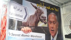 همچنین در این غرفه عکسی از سخنرانی سال جاری نتانیاهو در مجمع عمومی سازمان ملل متحد به نمایش گذاشته شده است او در این سخنرانی مدعی شده بود که ایران در ساختمانی در مقابل یک قالیشویی در منطقه تورقوز آباد تهران به فعالیتهای سری هستهای خارج از نظارت آژانس بینالمللی انرژی اتمی مشغول بوده است . ادعایی که از سوی آژانس بینالمللی انرژی اتمی مورد توجه قرار نگرفت . این ادعای نتانیاهو در شبکههای اجتماعی مورد واکنش گسترده ای قرار گرفت و باعث مطرح شدن گسترده نام این منطقه تهران در فضای عمومی و رسانه های داخلی و بینالمللی شد .