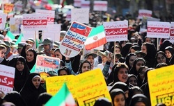 با شکر و سپاس خداوند قادر متعال به پاس توفیق الهی چهل سال مقاومت، ایستادگی و صلابت سرافرازانه در برابر چهل سال پیشه و ترفند نظام سلطه با محوریت طاغوت اعظم امریکای سلطهجو و به شکستکشاندن و انزوای چهل ساله شیطان بزرگ، اینکه در آستانه چهلمین سالگرد پیروزی شکوهمند انقلاب اسلامی و غلبه حق بر باطل و سلام و درود به روح ملکوتی احیاگر اسلام ناب محمدی "صل الله علیه و آله" و بنیانگذار نظام مقدس اسلامی، حضرت امام خمینی "رضوان الله علیه" دمنده روح جهاد و استکبارستیزی در کالبد ملت سلحشور ایران اسلامی و با تأکید بر تعطیلناپذیر و نشأتگرفته از تعالیم دینی و آموزه قرآنی بودن استکبارستیزی، ما شرکتکنندگان در تظاهرات ضداستکباری یومالله سیزدهم آبان ماه با ندای ملکوتی الله اکبر ـ خامنهای رهبر و شعار همیشه زنده مرگ بر آمریکا اعلام میداریم: