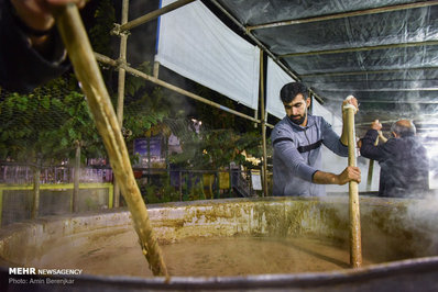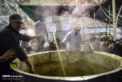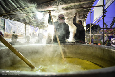 همزمان با رحلت رسول مکرم اسلام(ص)، آیین طبخ 84 هزارکیلو آش نذری در پارک خلدبرین شیراز برگزار شد.