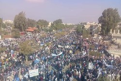 تصاویر منتشر شده از شرکت وسیع مردم شهر حکایت دارد؛ شهری که چند ماهی است به کنترل ارتش سوریه در آمده است و در تاریخ 12 تیر گذشته، گروههای مسلح در ازای تحویل سلاحهای سنگین و سبک، جنوب سوریه را ترک کرده و ارتش این کشور وارد مناطق تحت کنترل آنها میشود.