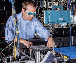 این دستگاه های آزمایشگاهی هرکدام هزاران اتم عنصر شیمیایی یتربیم (ytterbium) را در شبکه ای از اشعه های لیزر گرفتار می کنند.