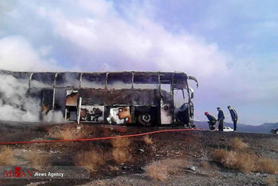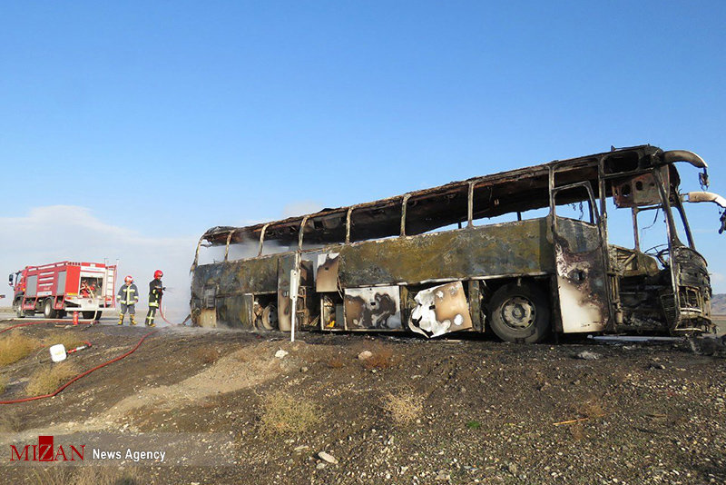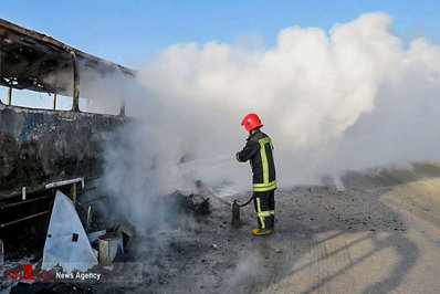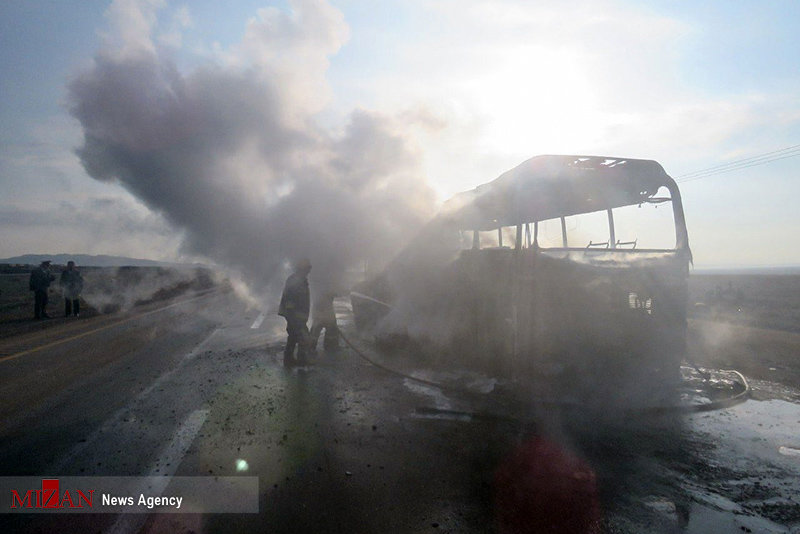 عکس/ آتشسوزی اتوبوس مسافربری در جاده سبزوار-نیشابور
