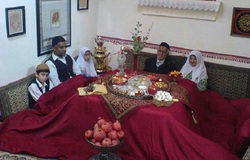 وی ادامه می‌دهد: آنها تنقلاتی مانند برگه انواع میوه‌های درختی یا به قول یزدی‌ها «پره» را آب می‌کردند و همراه با لبوی چغندر و شلغم و انواع شولی مانند شولی چغندروک یا شولی شلغم و همچنین هندوانه‌ای که از تابستان در میان کاه و در زیر زمین نگهداری کرده بودند را در جمع خانوادگی صرف می‌کردند.