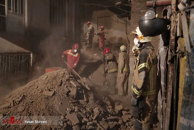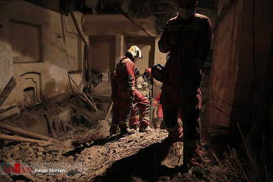 عکس/ریزش ساختمان در سبزهمیدان تهران؛ آتشنشانان مشغول آواربرداری هستند