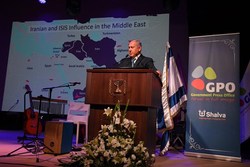نخستوزیر رژیم صهیونیستی با نشان دادن تصویری از نقشه غرب آسیا با رنگهای سیاه به نشانه نفوذ ایران و قرمز به نشانه حضور گروه تروریستی داعش، مدعی شد: «ایران میخواهد ارتش خود را از فاصله 1500 کیلومتری به مرزهای ما بیاورد، موشکهایی با برد 400 تا 700 کیلومتر را بیاورد که میتواند تمام اسرائیل را پوشش دهد و همچنین 80 هزار مبارز شیعه را که قصد نابودی ما را دارند».