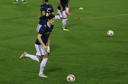 در آغاز کار روی چمن، مطابق روزهای گذشته ابتدا در زمین کناری زمین اصلی بازیکنان گرم کردند و در ادامه به زمین اصلی رفتند تا کار با توپ را در دستور کار خود قرار دهند.