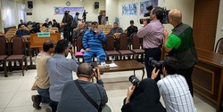 در این لحظه متهم از قاضی دادگاه خواست کمی تنفس به او بدهد و با اذن قاضی در جایگاه خود نشست.