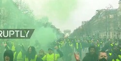 14:01 معترضان علاوه بر حمل پلاکارد و پرچم فرانسه، از  مواد دود‌زا هم  استفاده کرده‌اند و در برخی موارد، اقدام به انتشار «دود زرد» کرده‌اند.