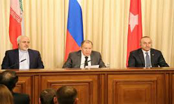 به گزارش «آوای نشاط»، در این نشست مشترک که در ارتباط با بحران سوریه و آخرین تحولات این بحران برگزار شده، محمدجواد ظریف وزیر امور خارجه ایران، سرگئی لاوروف وزیر امور خارجه روسیه و چاووش اوغلو وزیر امور خارجه ترکیه حضور دارند.