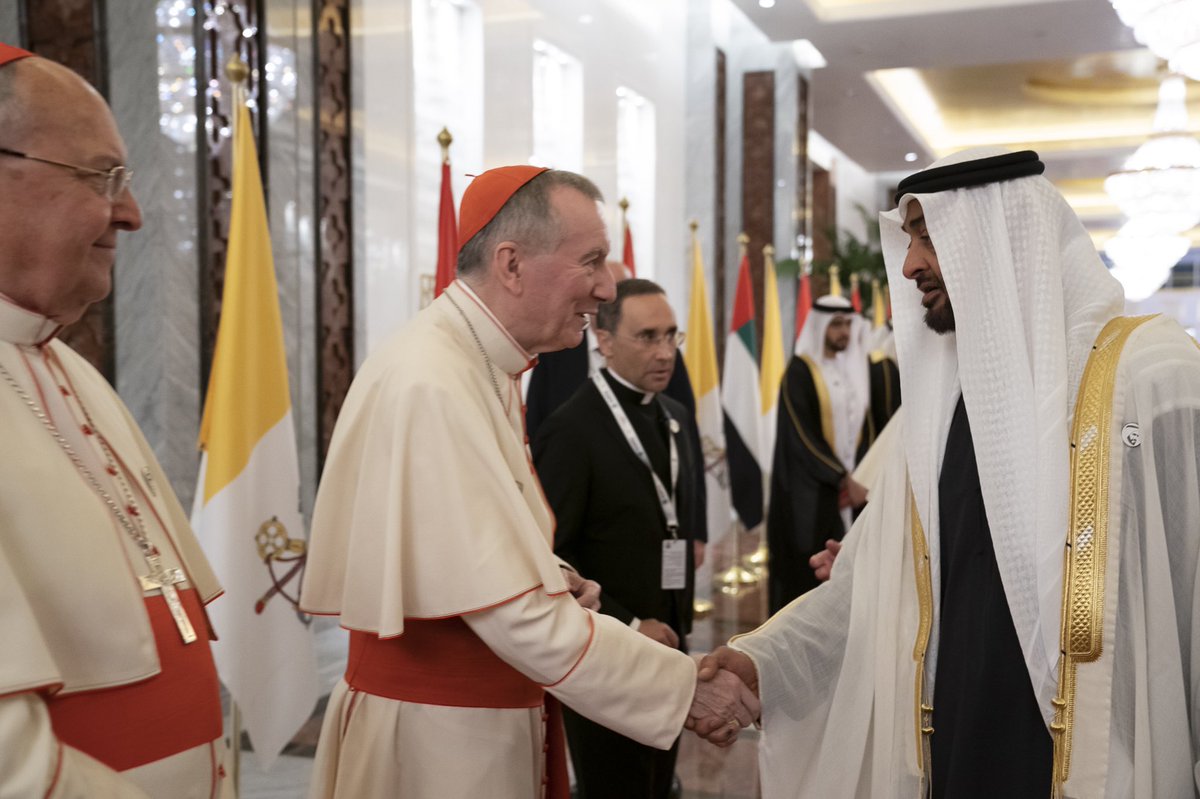 هواپیمای او در ابوظبی به زمین نشست، جایی که محمد بن زاید آل نهیان، ولیعهد به استقبال او رفت.