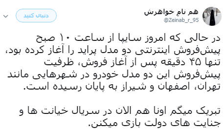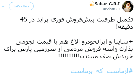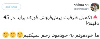 پایان پیش فروش پراید، آن هم ظرف نیم ساعت با واکنش متفاوت کاربران توییترفارسی مواجه شود: