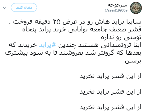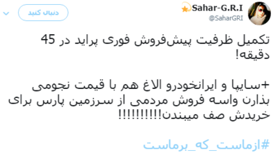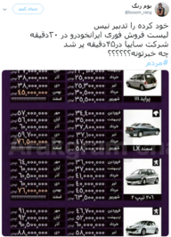 واکنش های توییتری به پیش فروش نیم ساعته پراید؛