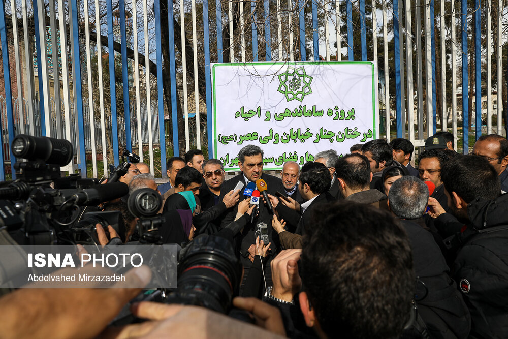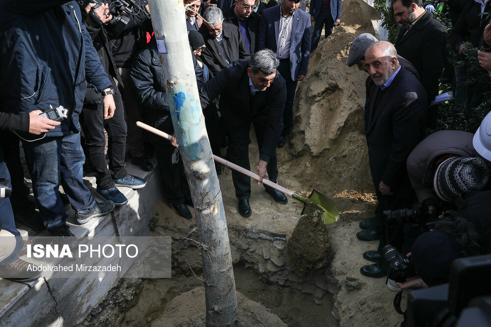 پروژه احیای ۱۱۰۰ درخت چنار خیابان ولیعصر با حضور پیروز حناچی شهردار تهران و حداد عادل در تقاطع خیابان ولیعصر و خیابان شهید بهشتی برگزار شد.