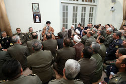 رهبر انقلاب اسلامی، نیروهای مسلح را در منطق اسلام و جمهوری اسلامی، «حصارهایی امن برای ملت» برشمردند و افزودند: نیروهای مسلح در زمان جنگ، در مقابل تهاجم دشمن با دانش، تجربه و فداکاری، سینه سپر و آن را منکوب و وادار به عقب نشینی میکنند و در زمان صلح نیز با کارآمدی و آمادگی کامل، مایه اطمینان و آرامش خاطر ملت هستند، و به همین دلیل، دشمنان به دنبال بر هم زدن آرامش مردم از طریق مضطرب نشان دادن نیروهای مسلح هستند.