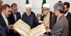 به گزارش آوای نشاط، روحانی در بازگشت از سفر تاجیکستان به زیارت امام رضاعلیه السلام مشرف شد و با تولیت آستان قدس رضوی دیدار و گفتگو کرد. در حاشیه این دیدار حجت الاسلام والمسلمین مروی قرآن عصر سلجوقی را به رییس جمهور اهدا کرد.