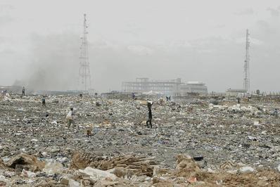 دودی غلیظ و اسیدی در اثر سوزاندن زبالهها از جایجای این منطقه به هوا بلند است و بیش از ۱۰ هزار کارگر در شرایط بسیار بد برای نابودسازی یا بازیافت زبالههای این مکان کار میکنند. کارشناسان میگویند این منطقه یکی از ۱۰ مکانی است که روی زمین بیشترین آلودگی را دارند.