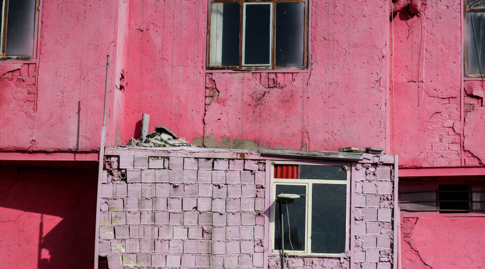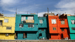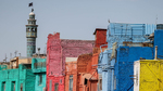 تصویر نمایی از خانه های رنگی در خیابان نواب قزوین را نمایش می دهد.