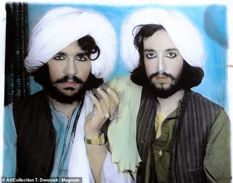 در بسیاری از عکس ها چهره افراد بیش از حد سفید است که به نظر می رسد ماده ای سفیدکننده با صورت مالیده اند، همچنین چشم هایشان نیز سرمه کشیده است.