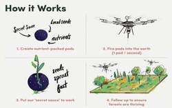 در طرح گفته شده پهپادها غلافی حاوی خاک حاوی مواد مغذی دور سه دانه از قبل جوانه زده حمل می کنند. این غلاف دانه های جوانه زده را به مدت ۹ ماه زنده نگه می دارد و برای آنها فرصت کافی فراهم می کند تا در محیط های محلی رشد کنند و ریشه بدوانند.