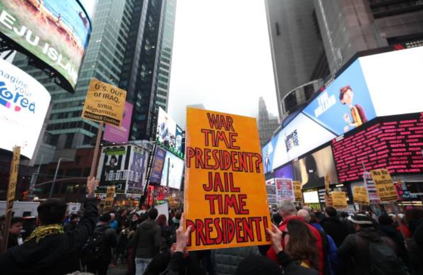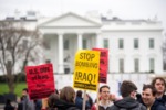 معترضان ضدجنگ در واشنگتن هم در برابر کاخ سفید تجمع کردند و در واشنگتن، در برابر برج ترامپ. آنطور که رسانههای آمریکایی گزارش دادهاند، مجموعا در ۷۰ نقطه در آمریکا تظاهرات ضدجنگ برگزار شده است.