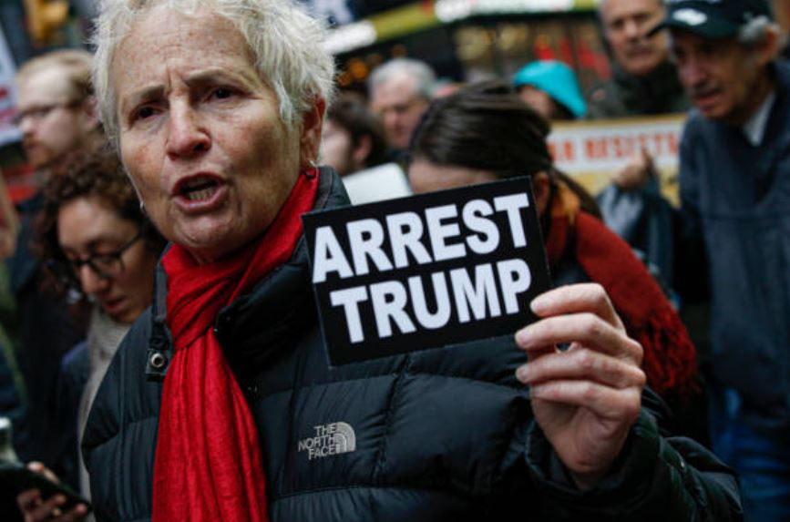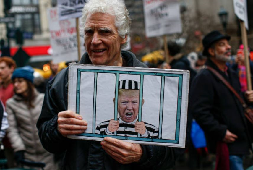معترضان همچنین بازداشت و استیضاح ترامپ به دلیل به خطر انداختن منافع آمریکا را خواستار شدهاند.