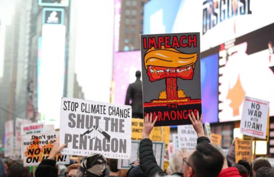 به گزارش آوای نشاط، روز شنبه هزاران نفر از آمریکاییها در اعتراض به اقدامات «دونالد ترامپ» رئیسجمهور آمریکا که به تشدید تنش با ایران منجر شده، به خیابانها آمدند.