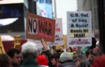 «به بمباران عراق پایان دهید» و «از خاورمیانه» خارج شوید، از جمله شعارهایی بود که در این تظاهرات مطرح شد.