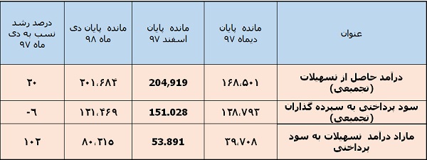 مقایسه درآمد تسهیلات اعطایی و سود پرداختی به سپرده گذاران