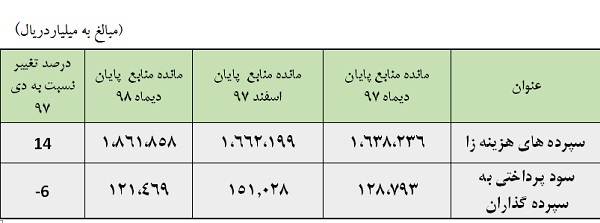 نکته قابل توجه دیگر افزایش 47 درصدی منابع غیر هزینه زا طی ده ماهه سال 98 نسبت به همین دوره در سال گذشته است.