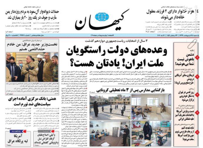به گزارش آوای نشاط، تیتر نیم صفحه نخست روزنامه‌های سیاسی یکشنبه ۲۸ اردیبهشت ۹۹ به مسائل مهم روز سیاست پرداخته است.