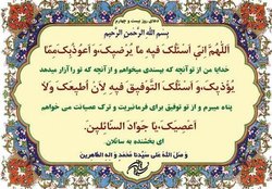 «خدایا در این روز از تو درخواست می‌کنم آنچه را که رضای تو در اوست، و به تو پناه می‌برم از آنچه تو را پسند است و از تو توفیق می‌خواهم که در این روز به فرمان تو باشم و هیچ نافرمانی نکنم، ای عطا بخش سوال‌کنندگان. »