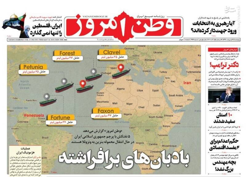 بادبانهای برافراشته/ خط تولید مفسده/ ارزان سازی خودرو روی کاغذ/ حکم اعدام برای سلاطین خودرو/ از سایهات هم میترسند/ ردپای کرونا در بازار کار/تیتر تعدادی از روزنامههای امروز است.