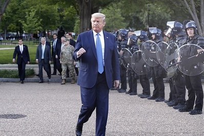 طبق این گزارش، درست لحظاتی بعد از آنکه نیروهای امنیتی روز دوشنبه هفته جاری، پارک لافایت را از حضور معترضان پاکسازی کردند، ترامپ در حالیکه انجیل به دست داشت، از کلیسای سنت جان که به دنبال اعتراضات روز یکشنبه در واشنگتن با نقاشی دیواری و گرافیتی مزین شده بود و تا حدودی نیز آسیب دیده بود، بازدید کرد.